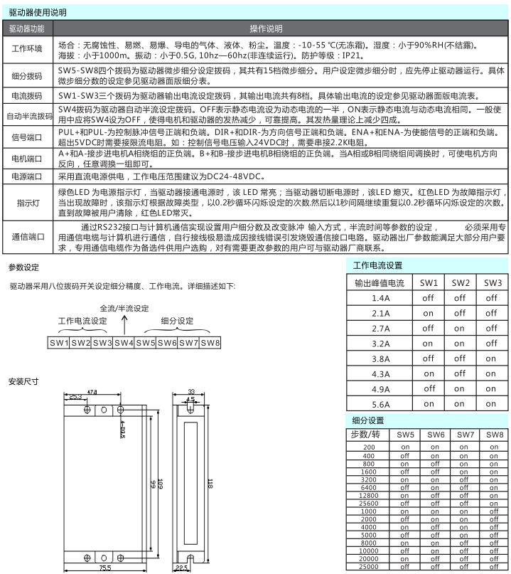控制信號接口電平:3.3V~24VDC,無需外接限流電阻
